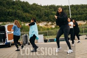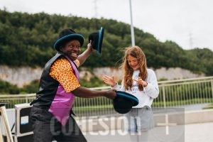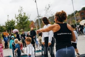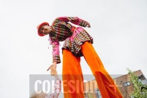Strong winds and intermittent rain fall couldn’t stop the third Ebbsfleet Fusion Festival from taking place in Platinum Jubilee Park on Saturday 6th July. The family and community themed event, which is now in its third year, was produced by Cohesion Plus in partnership with Ebbsfleet Development Corporation and supported by Arts Council England. Despite the weather conditions, hundreds of local residents came out to support and enjoy an exciting programme of explosive artistic performance, fitness and wellbeing workshops and hot food.